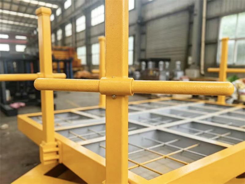 The struction of this stone block trimming worktable could be divided to four parts. The bottom part is base platform to install four heavy-duty wheels, so as to run on the floor rails in quarries or stone factories. The platform is welded with U-beams and middle box section. Then on top of this platform is a heavy-duty roller track that allow the upside worktable and loading stone block to be rotated flexibly. So we have this worktable as thrid part, also welded with channel steel and box section to bear heavy stone blocks. We need to specially emphasize that we keep the box section empty, so as to pour concrete and form a stronger and more lasting platform. Finaly, the top worktable is also connected to four steel columns with adjustable bars, which ensures the block is kept on the right position and workers are safe from danger. Of course, the rotating process is powered by motor without much labor cost. Therefore, this smart design of block repair workbench is useful in removing excess or irregular portions of various stone blocks, in order to realize perfect 90 degree of angles and parallel faces. It will finally improve stone slab yield and quality control.